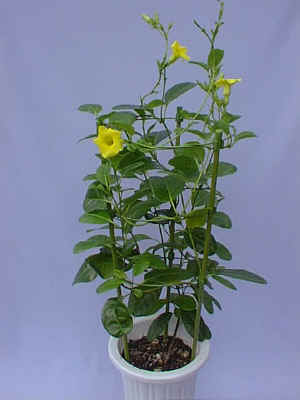 | これも蔓性植物で行灯仕立てなどにします。夏の黄花としては涼しげな花 |